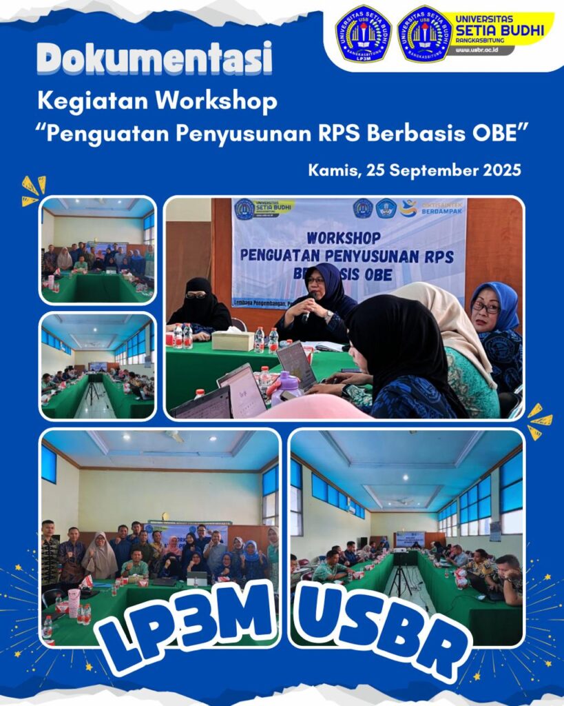 Pada hari dan tanggal terlampir di atas, serta untuk meningkatkan persiapan kegiatan awal perkuliahan Semester Ganjil Tahun Ajaran 2025/2026, Lembaga Pengembangan Pendidikan dan Penjaminan Mutu (LP3M) melaksanakan kegiatan Workshop dengan tema “Penguatan Penyusunan RPS Berbasis OBE” yang bertempat di Universitas Setia Budhi Rangkasbitung.